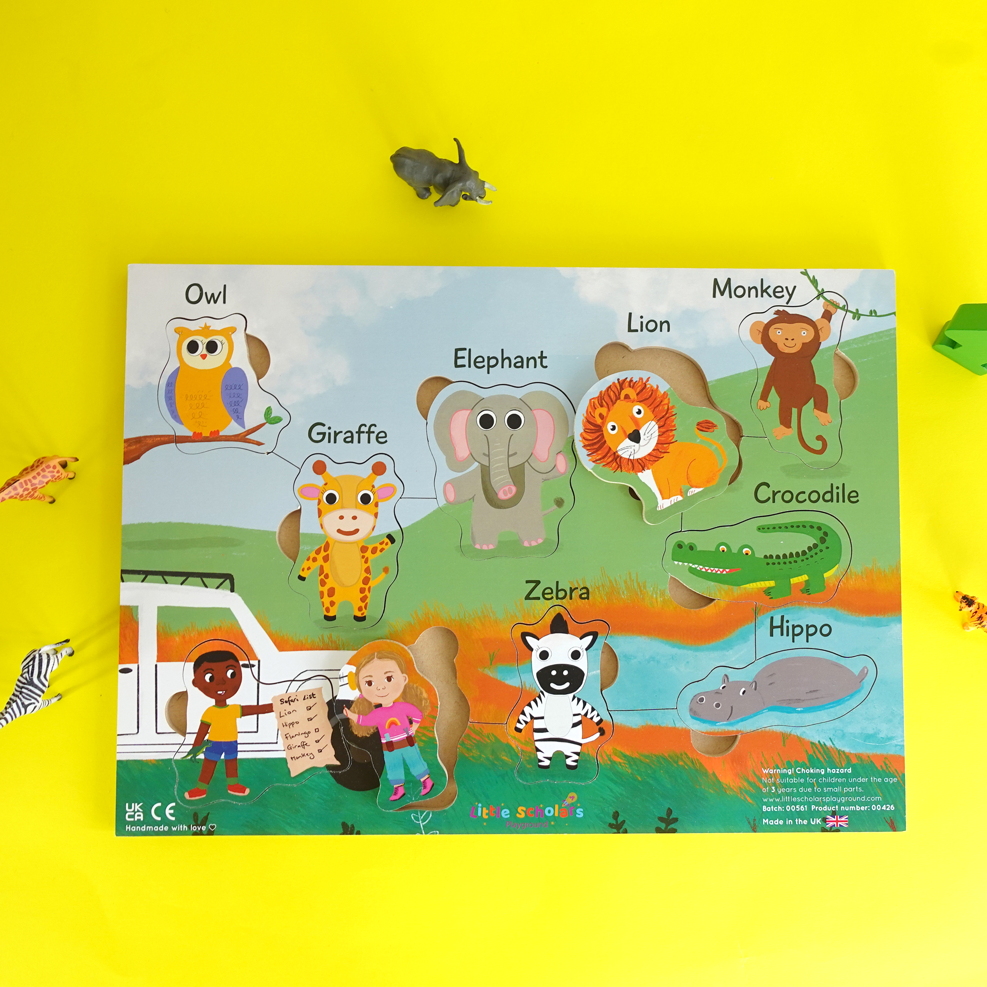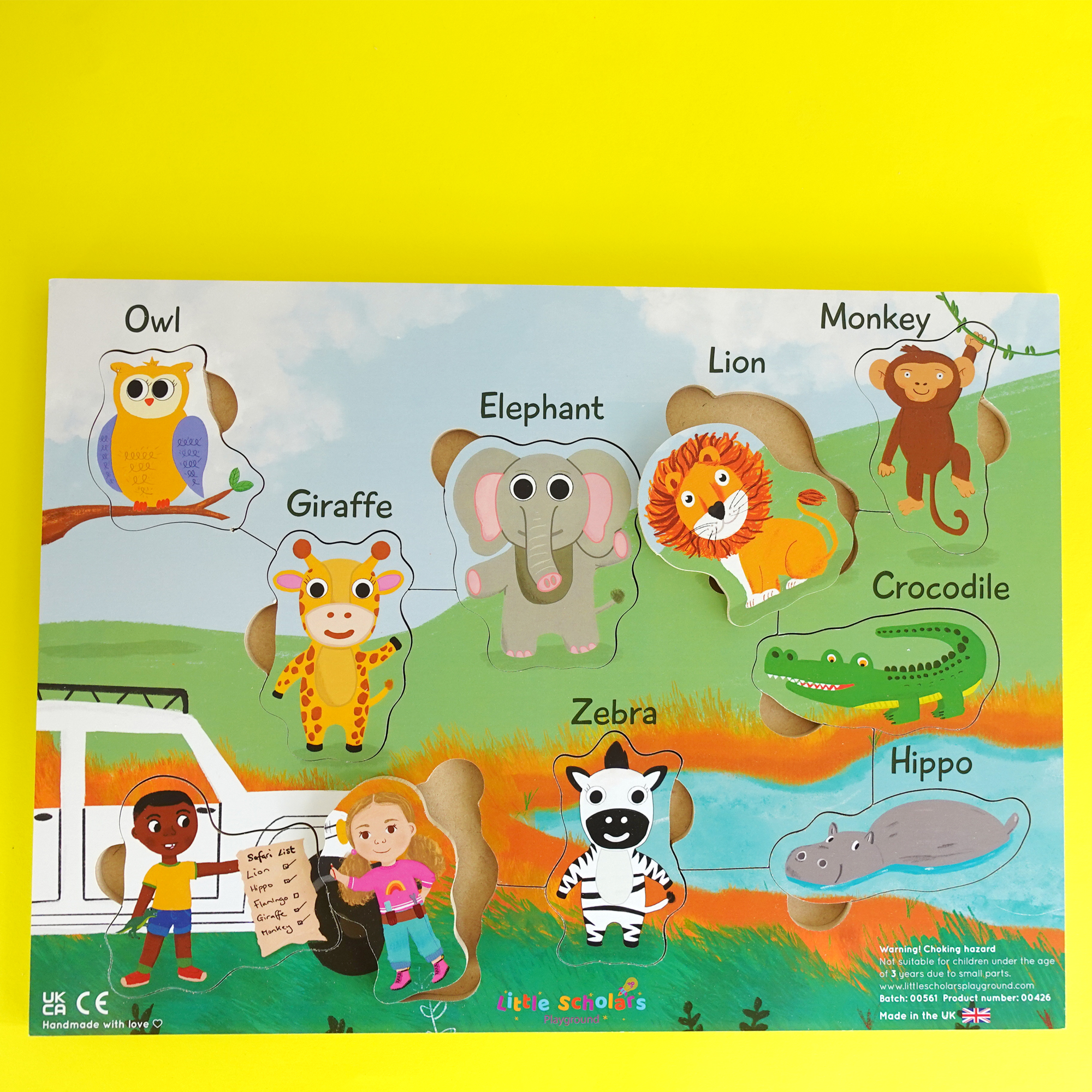 Emmanuel and Sienna go on a safari in our safari wooden puzzle. This puzzle is beautifully designed by us and handmade in the UK, using eco friendly FSC wood. We pride ourselves on quality and craftsmanship, we pay attention to detail and guarantee safety and value. A toy created with longevity in mind, so it can be handed down and used again and again. It makes the perfect timeless Christmas gift.
